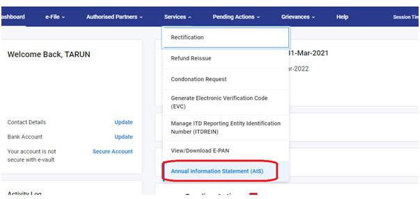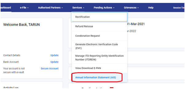 चरण 1: आयकर ई-फाइलिंग पोर्टल पर जाएं और एआईएस जानकारी तक पहुंचें।